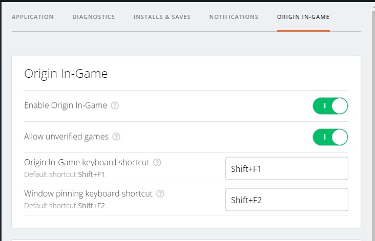 Click on the “Origin In-Game” tab