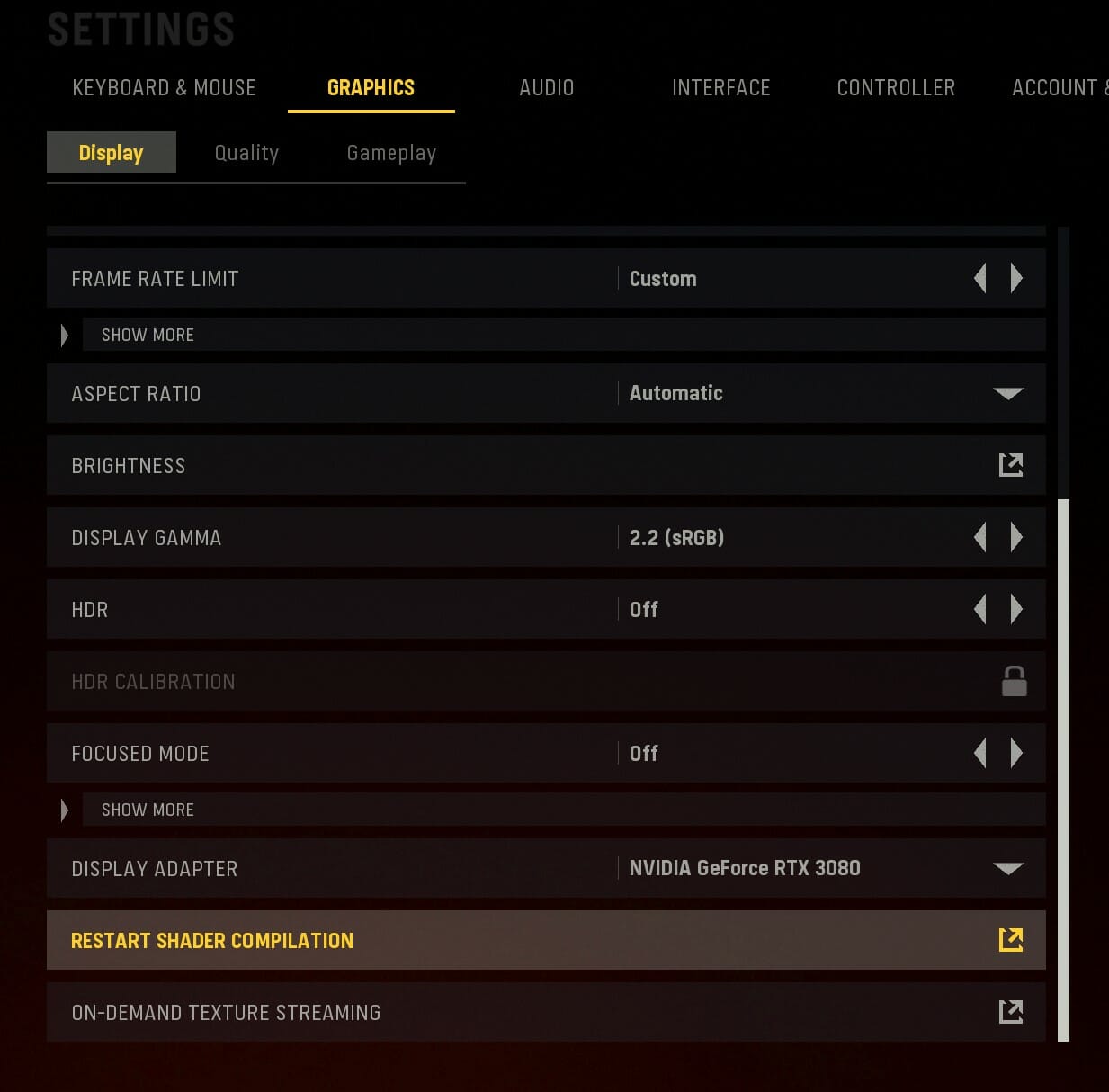 - Scroll down and locate “Restart Shaders Compilation”