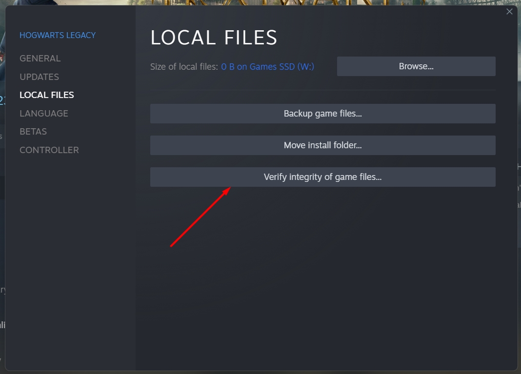 Click on the Local Files tab > click on the Verify Integrity of Game Files… button.