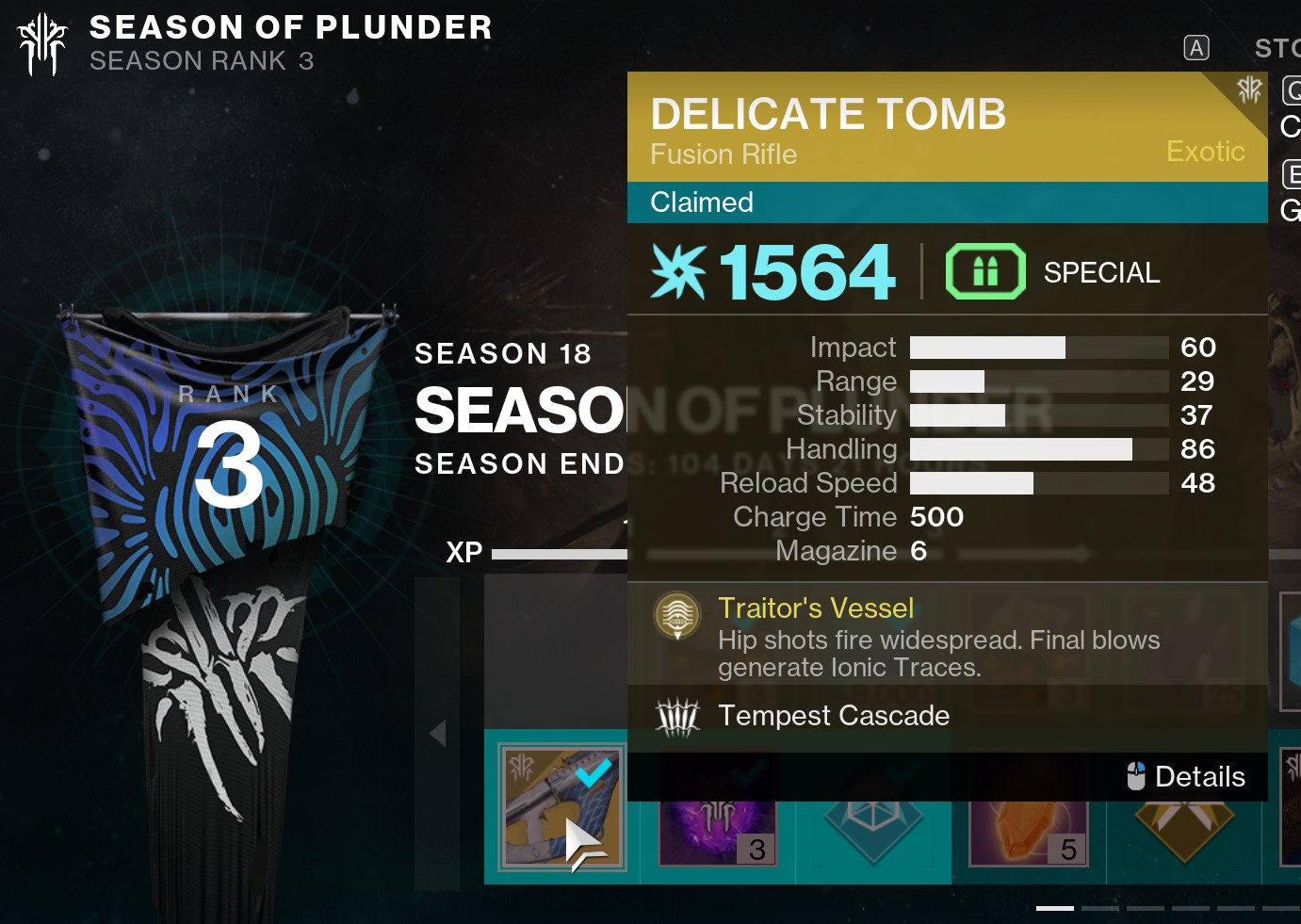 However, I am not going to talk about that today; this article will focus on getting your hands on the Delicate Tomb Catalyst in Season 18. Those who still haven’t got their hands on this fusion rifle yet can purchase the Season Pass to unlock it. If you’ve already bought the Season Pass, Press M, navigate to the Season 18 tab, and claim it.
