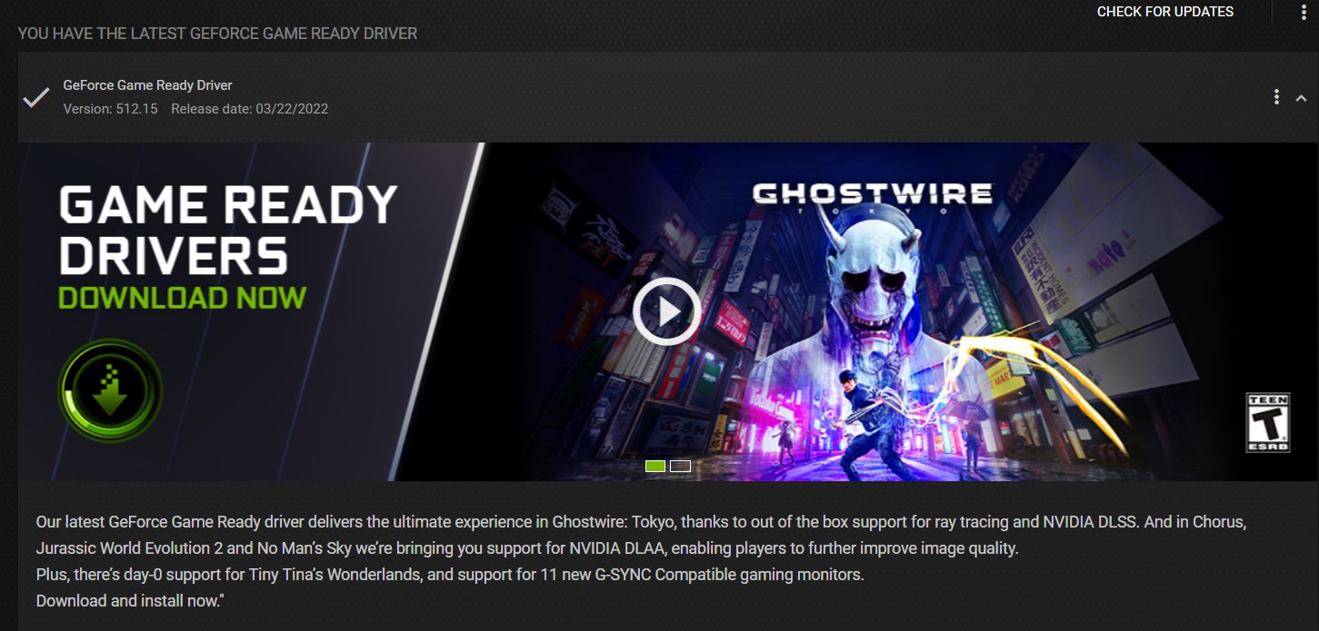 Nvidia has already released a full-fledged update that delivers day-0 optimizations for Ghostwire Tokyo. The Driver version is 512.15.