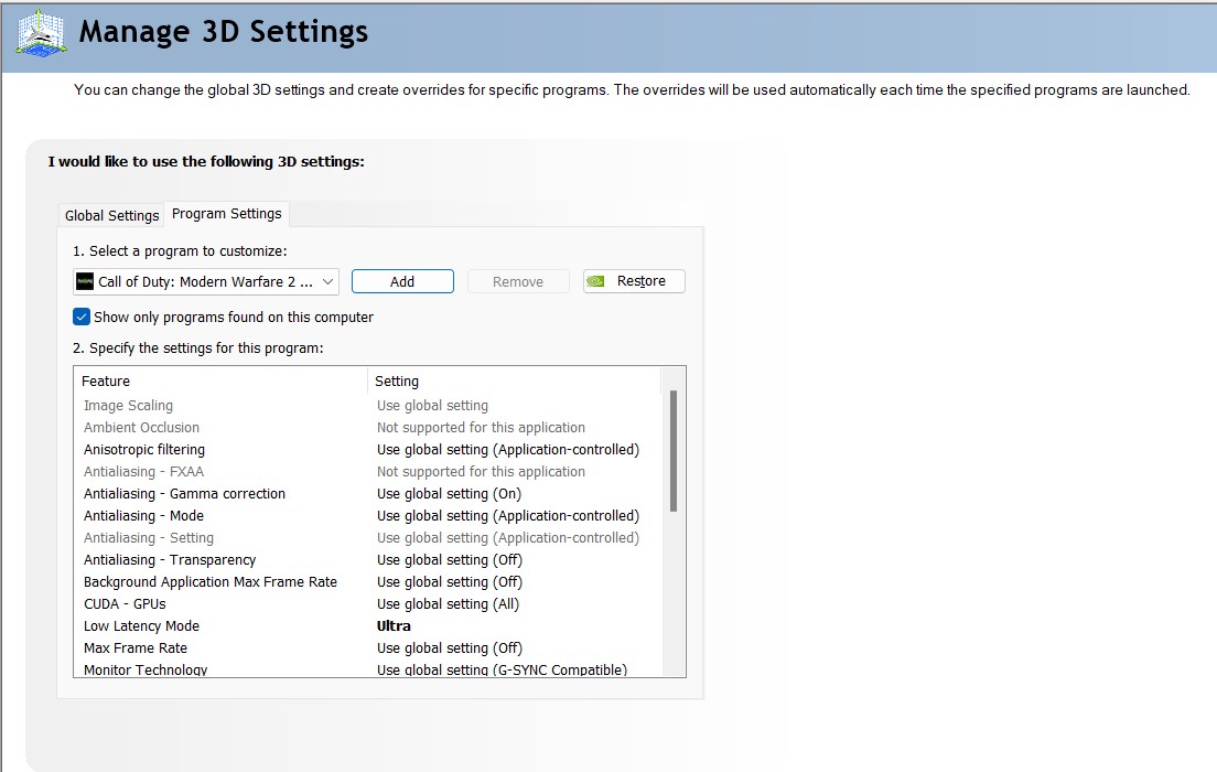 Low Lateny Mode: Ultra (High or Ultra makes sense only for PvP Games)*