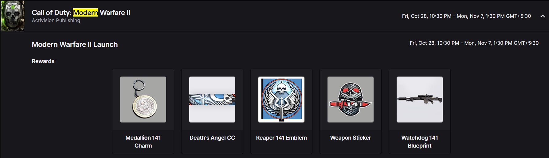 The current Twitch Rewards for MW2 are