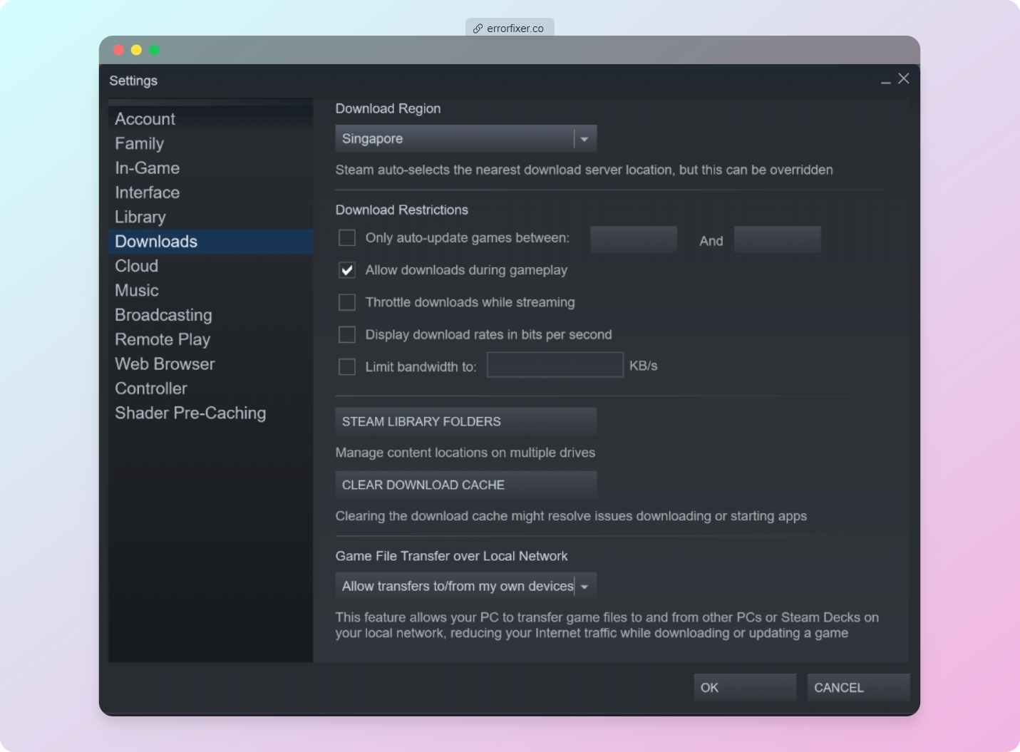 Under Download Region, try changing from US/Singapore