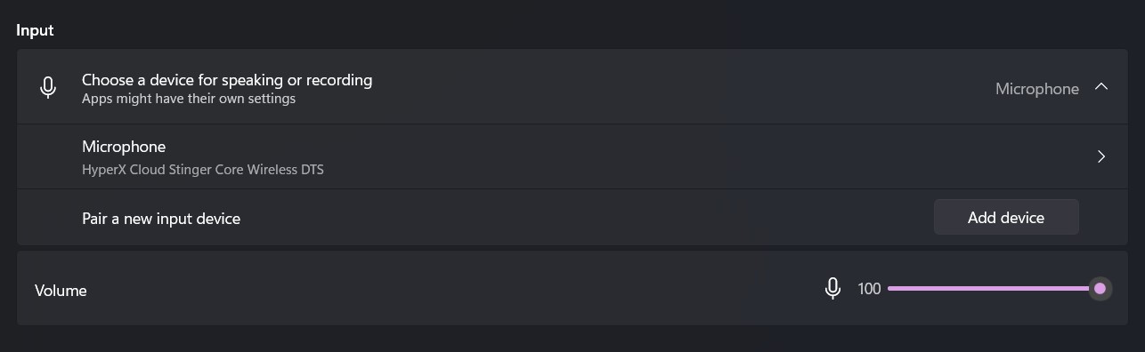 A new window displaying Sound settings will open up, scroll down to Input and select your main device instead of the default.