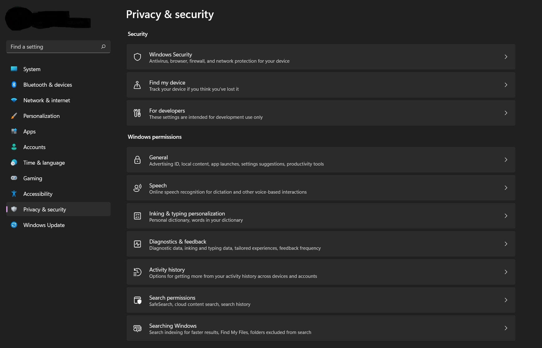 Search for Privacy in Windows Search Bar.